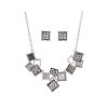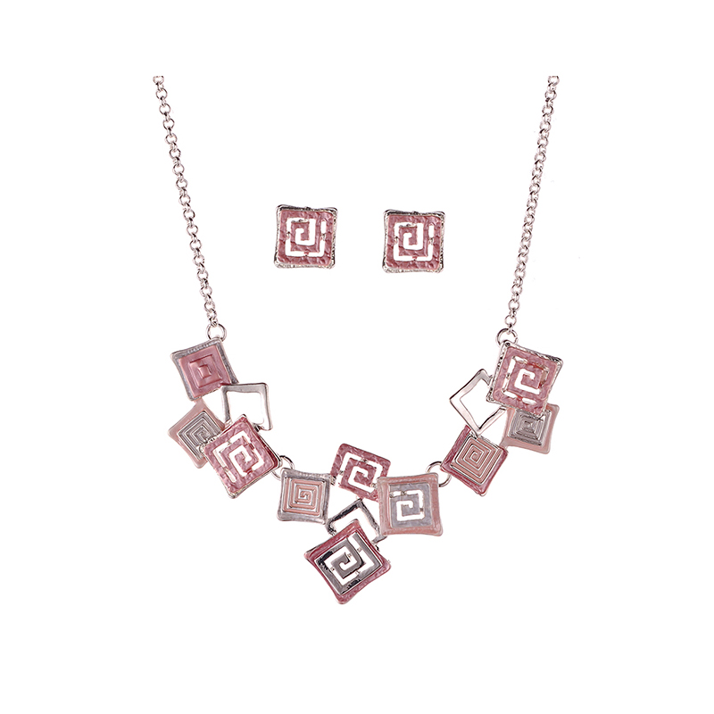 Unser Adriana Schmuckset ist ein zweiteiliges Schmuckset bestehend aus den Adriana Ohrsteckern und der Adriana Schmuckkette. Die Form besteht aus kleinen quadrat-förmigen Elementen, die in unterschiedlichen Größen und Farbabstufungen miteinander kombiniert worden sind. Die Form erinnert an ein Labyrinth. Die Halskette zaubert ein wunderschönes Dekolleté und ist einreihig, die passenden Ohrringe schaffen durch ihre Form und ihre Größe einen echten Hingucker im mittleren Gesichtsbereich. Symbolisch steht ein Labyrinth für die Schicksalswege.