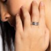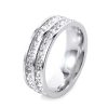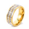 Edelstahl Ring mit funkelnden quadratischen Kristallen in zwei Reihen versetzt. Dieser Ring gewährleistet eine hervorragende Qualität und ist besonders hautverträglich, läuft nicht an und rostet nicht. Dieses Schmuckstück ist frei von Nickel, Blei und Cadmium. Dieser Ring ist in zwei Farben erhältlich: silber und vergoldet.