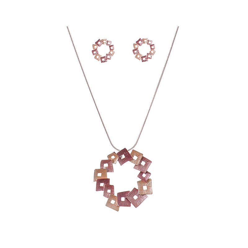 Unser Luana Schmuckset ist ein zweiteiliges Schmuckset bestehend aus den Luana Ohrsteckern und der Luana Schmuckkette. Die Form besteht aus perfekten quadrat-förmigen Elementen, die in unterschiedlichen Größen und Farbabstufungen miteinander kreisförmig kombiniert worden sind. Die Halskette zaubert ein wunderschönes Dekolleté und ist einreihig, die passenden Ohrringe schaffen durch ihre Form und ihre Größe einen echten Hingucker im mittleren Gesichtsbereich.