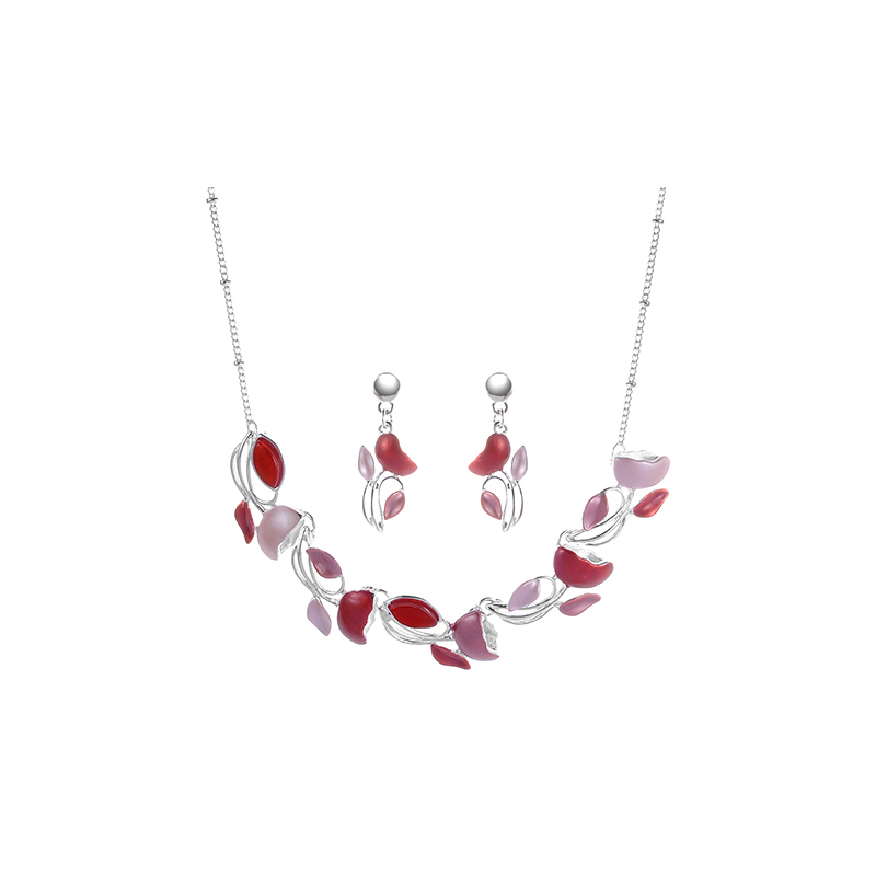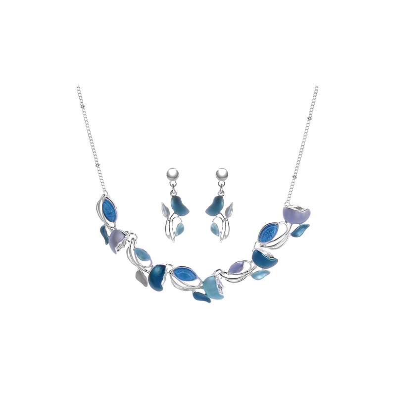 Unser Melis Schmuckset ist ein zweiteiliges Schmuckset bestehend aus den Melis Ohrsteckern und der Melis Schmuckkette. Die Form besteht aus kleinen blatt-förmigen Einzel-Elementen, die in unterschiedlichen Größen und Farbabstufungen miteinander kombiniert wurden. Die Halskette zaubert ein wunderschönes Dekolleté und ist einreihig, die passenden Ohrringe schaffen durch ihre Form und ihre Größe einen echten Hingucker im mittleren Gesichtsbereich. Symbolisch steht das Blatt für Hoffnung, Erneuerung und Wiederbelebung.