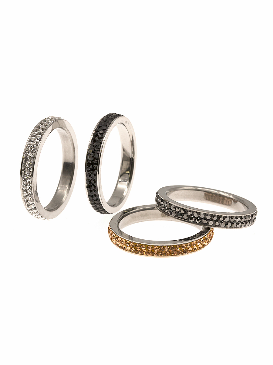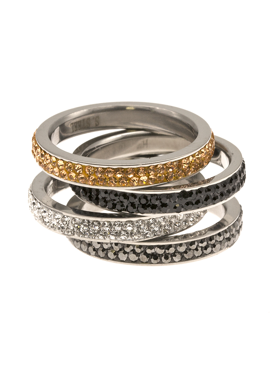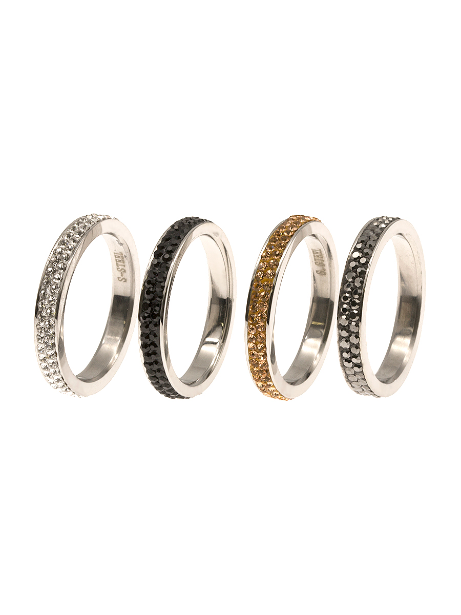 Edelstahl Ring mit funkelnden Kristallen versetzt, lässt sich sehr gut mit anderen Ringen kombinieren. Dieser Ring gewährleistet eine hervorragende Qualität und ist besonders hautverträglich, läuft nicht an und rostet nicht. Dieses Schmuckstück ist frei von Nickel, Blei und Cadmium. Dieser Ring ist in vier Farben erhältlich: weiß, schwarz, topas oder hämatit.