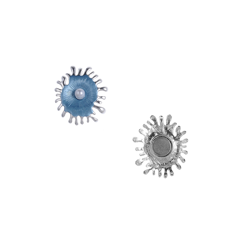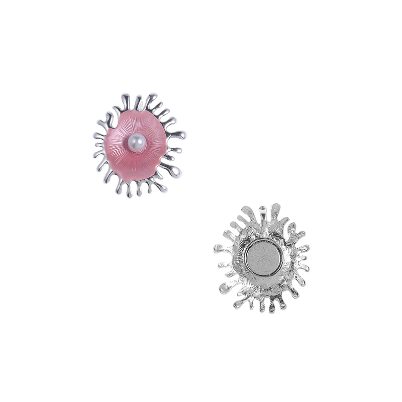 Das Material besteht aus einer Zinklegierung, die zusätzlich versilbert wurde. Die Farbe wurde mittels eines Speziallacks aufgetragen, der händisch auf jedes einzelne Element der Brosche angebracht wurde. Die hochwertige und präzise Verarbeitung kennzeichnet all unsere Produkte. Zusätzlich zur kunstvollen Form der Brosche, wurden die Vorderseite der Brosche mit einer Zierperle versehen, sodass die Brosche an eine geöffnete Muschel erinnert.